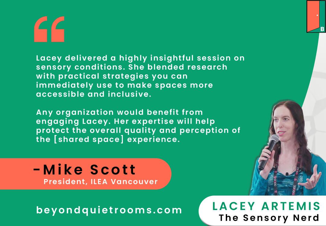 As humans we’ve mastered aesthetics. We’ve mastered branding. We’ve even mastered user experience. But we have almost no literacy around sensory design, and it has come to be a key determining factor who gets to participate in public life.Beyond Quiet Rooms (aka BQR) is the hub for information, statistics, resources, and more around sensory accessibility from a systems lens.aka "Sensory Accessibility for the Modern Overwhelm Era"BQR is the education and advocacy branch of Neuromix Consulting, headed by Lacey Artemis aka The Sensory Nerd. You can find out more about Neuromix's consulting services here.Quiet rooms are to sensory overwhelm as coffee is to chronic fatigue - it's better than nothing, but it's not the true solution.
