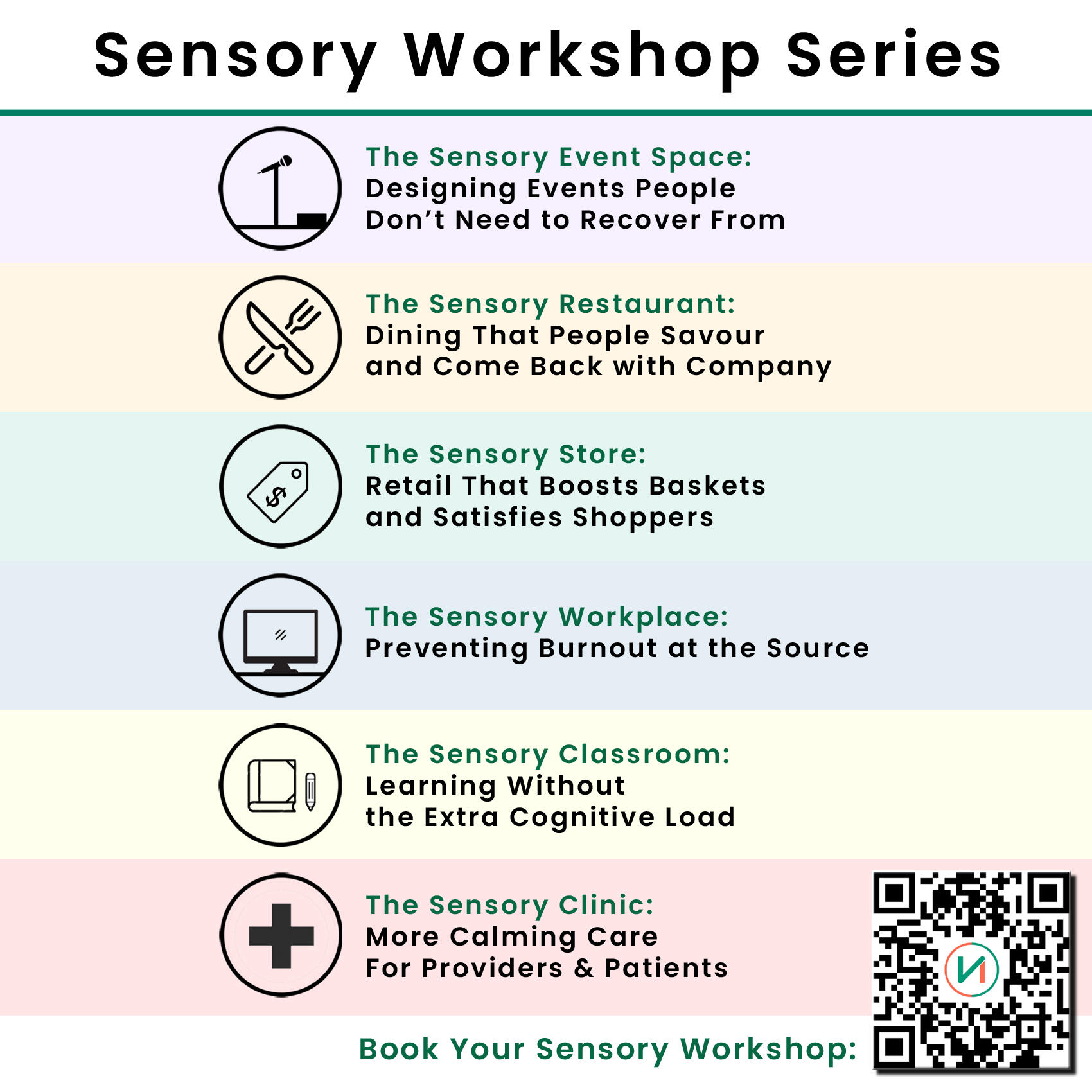 Delivered directly to organizations or offered as premium webinars and digital courses. The following sessions are available on demand for a fee.The Sensory Event: Designing Events People Don’t Need to Recover From
